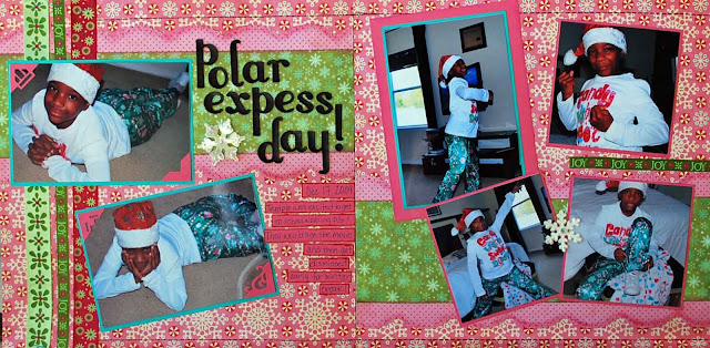 Here is a layout that I posted over at Let's Scrap! It is based on Cheri O'Neill's sketch 1-6-10. It's about Temple's Polar Express Day at school where they got to wear their pajamas to school, watch the Polar Express Movie and then be dismissed early from school to start their winter break. Can you tell how happy Temple is this day???