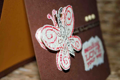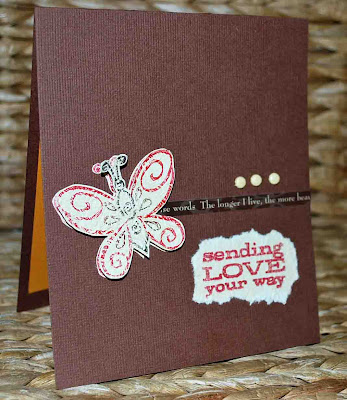 I stamped 2 butterflies, cut them out and layered one on top of the other with foam dots--I just wanted to give it some depth.