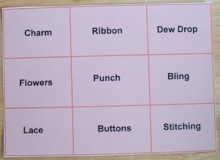 I chose the middle vertical row: Ribbon, Punch, Buttons. That made it easy to design my card--and this is what I came up with: