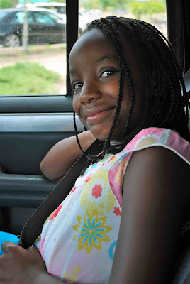 While we were there, we picked up some plants for my mother-in-law. We surprised her by driving over with the goods! Here's Temple in the car on the way there.