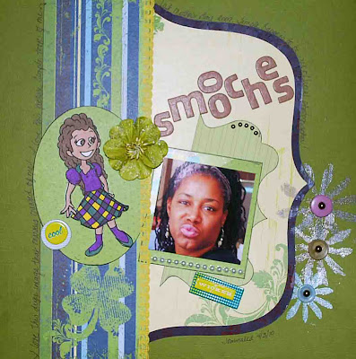 Tellen's Place and it's all about YOU! That's right, you have a blank canvas and it's all about whatever you want it to be. There are no restrictions and you can just do whatever you want to do? Terry's son, Markus, made the Design Team their own images, which was quite thrilling, and you can see all of the creativity used by the Design Team with their image! Here's my LO with me;D