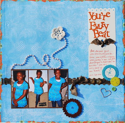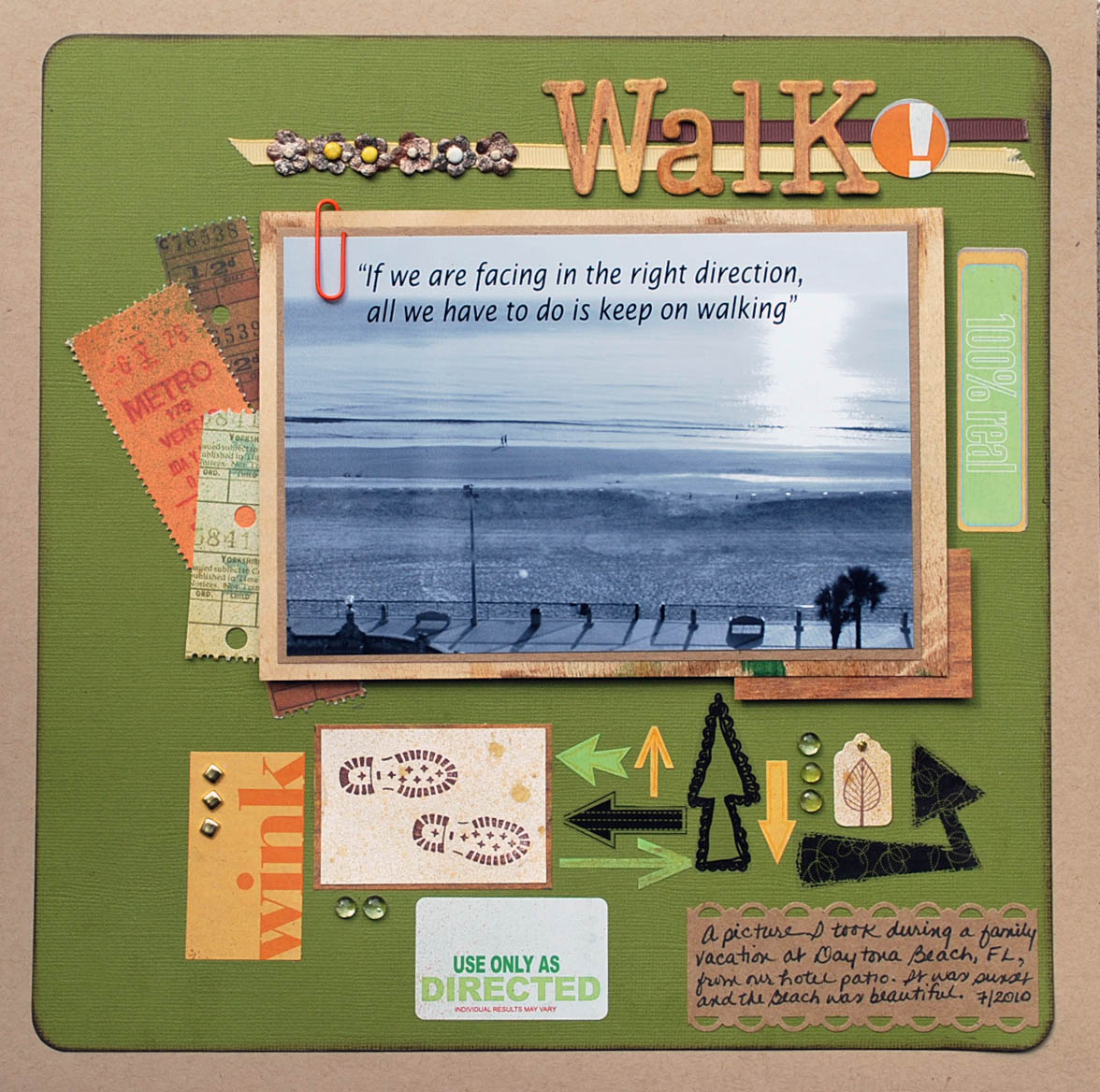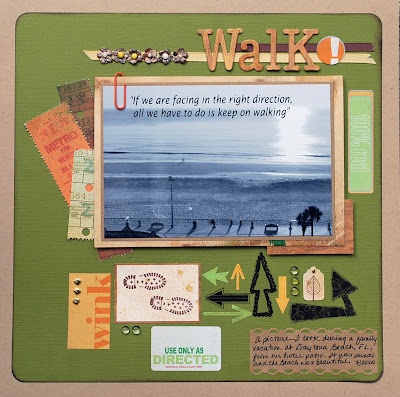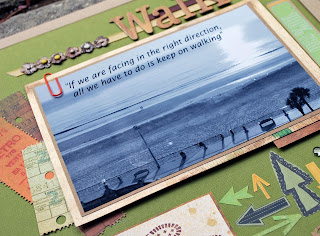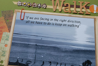I participated in Soul Scrappers, Soul Quest Challenge. Each entrant was mailed the same embellies to use in a LO which had to be based on this quote, "If we are facing in the right direction, all we have to do is keep on walking."