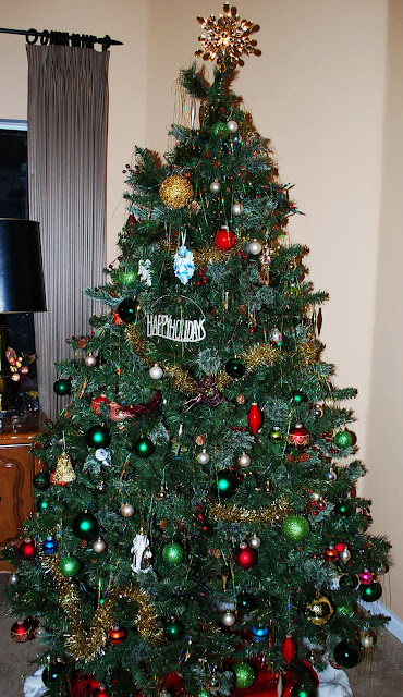 The project today was to get the tree up and decorated. I can't believe how long that took! Temple and I somehow hung the lights wrong and we had to pull them all off and start again--you would not believe I got to the point where I was literally screaming with frustration!!! After many hours, the tree was finally finished.